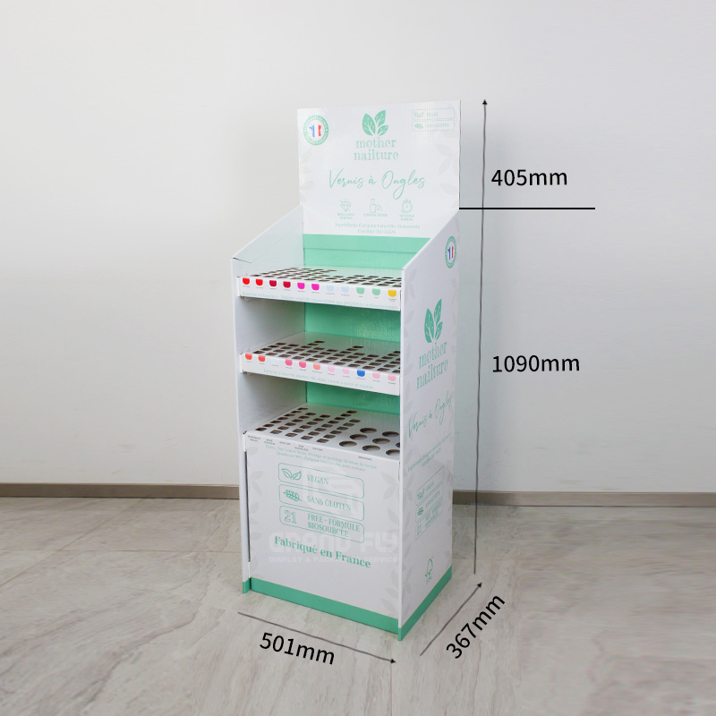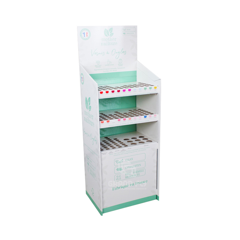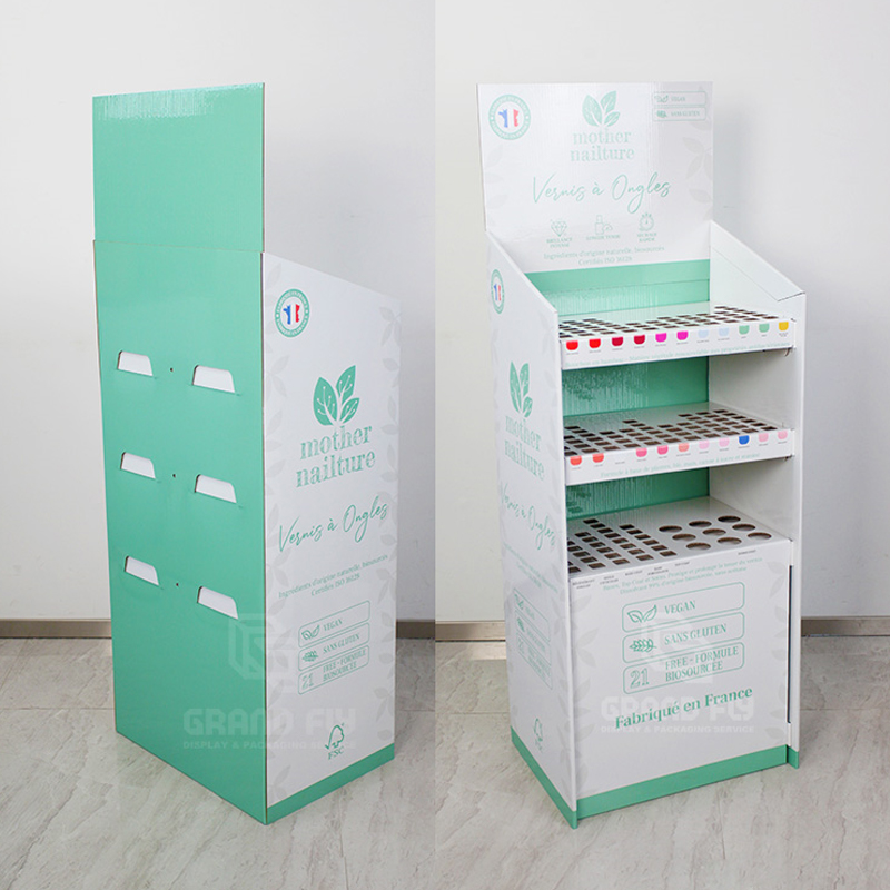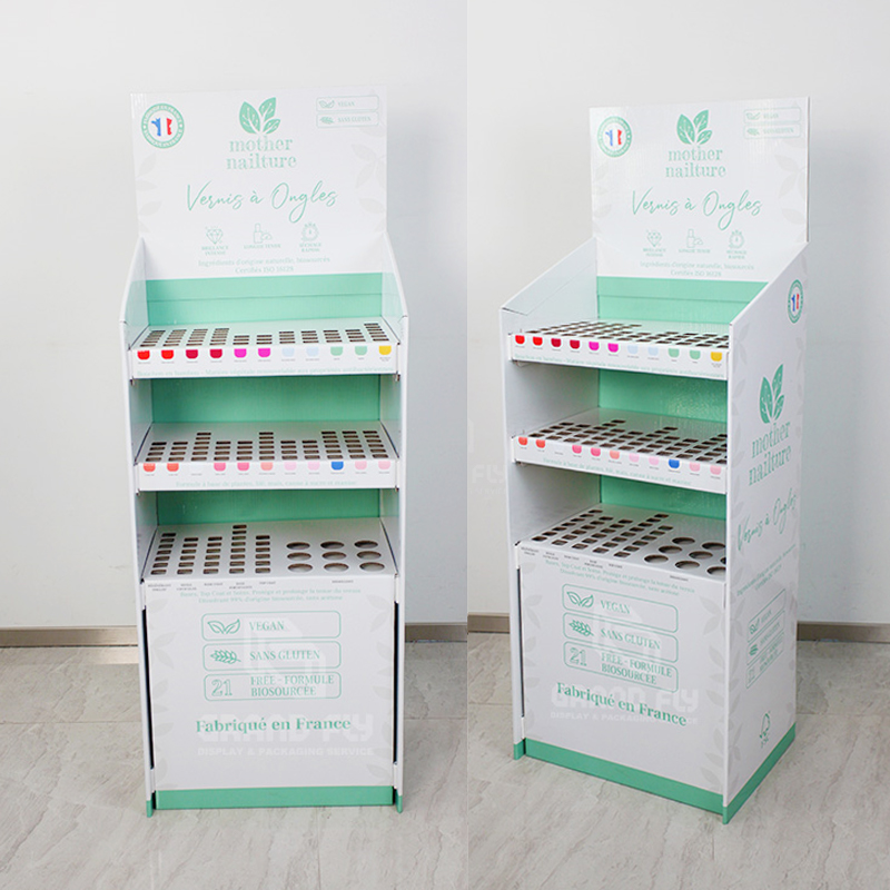 S2212253-3 Custom 3 Tier Cardboard Corrugated Display Shelf with inserts for Cosmetics