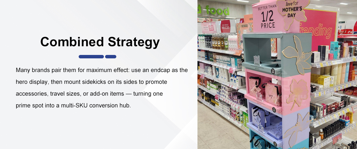 Both sidekick and endcap displays play essential roles in modern retail merchandising. While sidekicks excel at efficiency and incremental sales, endcaps dominate in visibility and brand storytelling.